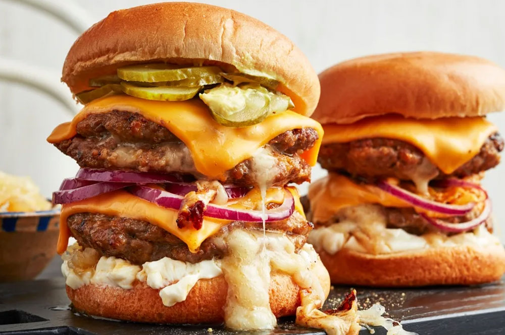 (House Burger)A towering classic with a crispy golden hash brown, fresh lettuce, juicy tomato, onions, tangy pickles, and a slice of creamy American cheese – the ultimate comfort burger.